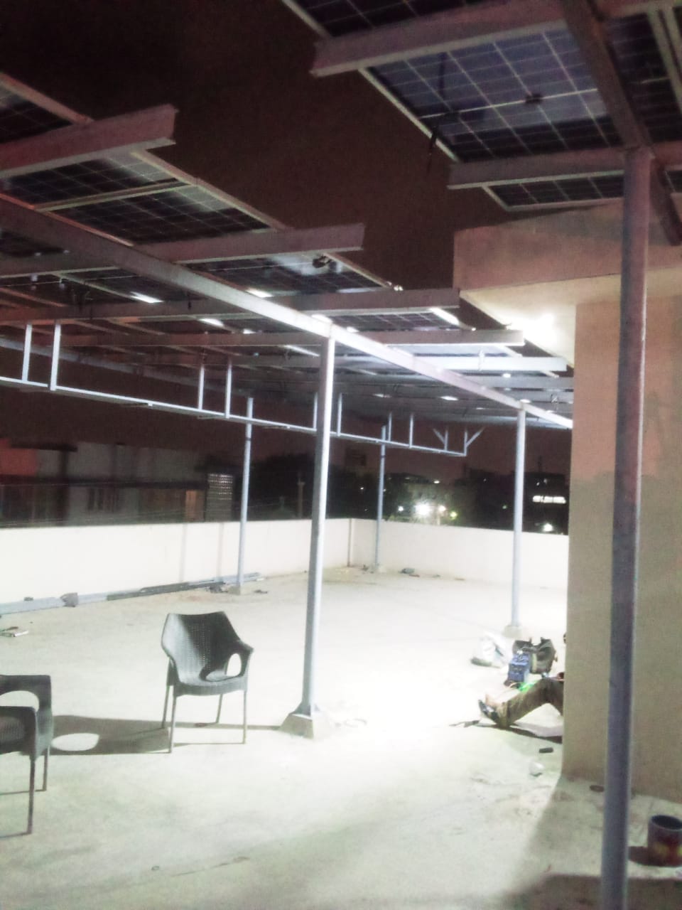 On-site installation of solar panels. Elevated structure to optimize tilt angle
